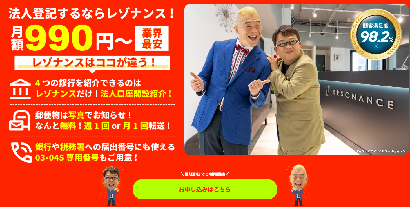 レゾナンスは「低価格・安心・明朗会計」の三拍子が揃った人気のバーチャルオフィスです。東京では9店舗、横浜で1店舗と合計10店舗展開しています。